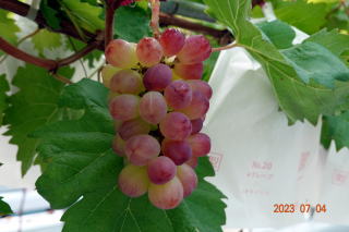 さすがに大きさは”デラウェアーじゃないよな”と思うような小粒でした、味や香は’なんとかうなずける’状態でした。来年に期待できる出来映え?になったと思うことにしています。